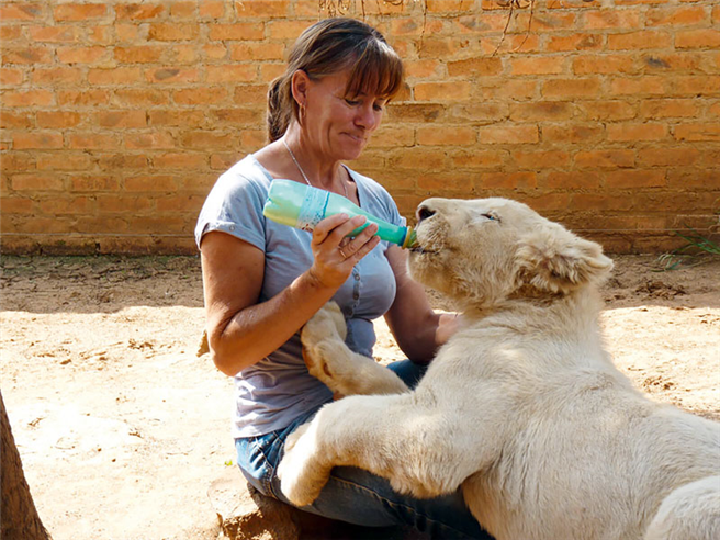 Etwa 8.000 Löwen vegetieren in Südafrika in Gefangenschaft vor sich hin. © Blood Lions, Pippa HaninsonNennen wir sie Tina. Tina gehört zu der Gruppe, die männliche Biologiestudenten früher despektierlich als „Kuscheltierfraktion" bezeichneten: junge Frauen, deren Motivation für Natur- und Artenschutz stark emotional bestimmt ist. Einmal im Leben Wildtiere – etwa verwaiste Löwenbabys – mit der Flache großziehen und etwas richtig Gutes für den Artenschutz tun, das ist ihr großer Traum. Und für so einen Traum ist Tina sogar bereit, für einige Monate jeden Groschen auf die Seite zu legen …