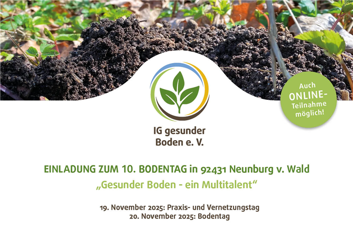 10. Internationaler Bodentag zum Thema "Gesunder Boden – ein Multitalent" am 19,/20. November 2025 in Neunburg v. Wald