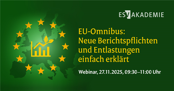 Weniger Bürokratie, mehr Klarheit: Das EU-Omnibus-Paket soll Nachhaltigkeits- und Sorgfaltspflichten vereinfachen. Das Webinar zeigt, was sich bei CSRD, CSDDD und EU-Taxonomie ändern soll – und wie Unternehmen davon strategisch profitieren.