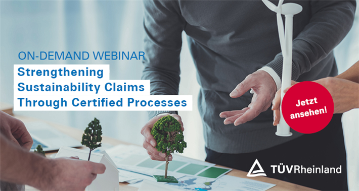 Immer mehr Unternehmen stehen vor der Herausforderung, ihre Umwelt- und Nachhaltigkeitsaussagen glaubwürdig zu kommunizieren. Erfahren Sie in unserem englischsprachigen On-Demand-Webinar „Strengthening Sustainability Claims Through Certified Processes”, wie Sie Ihre Prozesse optimieren und Nachhaltigkeit überzeugend und transparent belegen können.