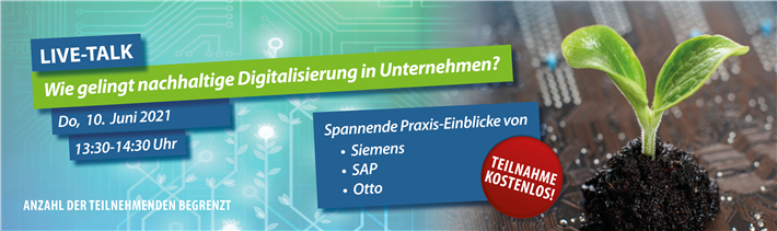 10.6.2021, 14:00 - 15:00 Uhr, onlineSiemens, SAP und Otto sprechen im AfB Live-Talk über Chancen und Risiken von Digitalisierung für die Umwelt