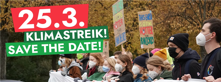 Es ist so weit! Bald schon laufen die ersten hundert Tage der neuen Ampelkoalition ab, doch die großen Versprechen im Klimaschutz sind noch offen offen. Deshalb streiken wir am 25.03. wieder gemeinsam, global und laut für echte Klimagerechtigkeit.