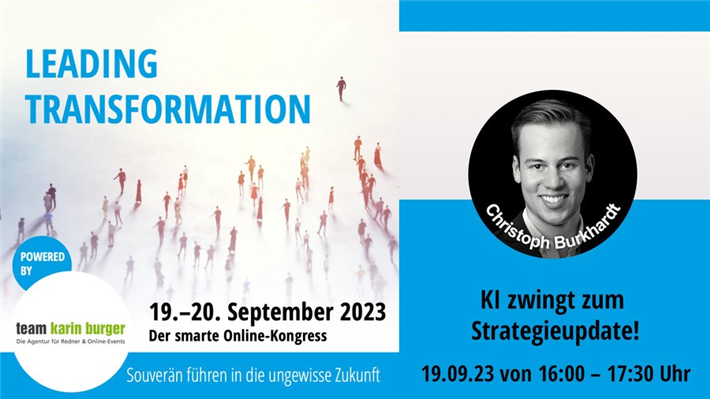 Unser fine-selection-Speaker Christoph Burkhardt, Experte für Impact Innovation & Digital Leadership, tritt live auf am 19. September von 16:00– 17:30 Uhr. Vortragsthema: KI zwingt zum Strategieupdate!