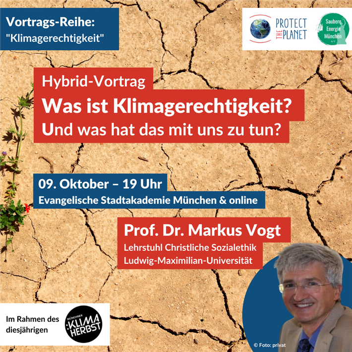 9.10.2023, 19:00 - 21:00 Uhr, 80331 München und onlineHybrid-Vortrag mit Diskussion im Rahmen des diesjährigen Klimaherbst "Klimagerechtigkeit"