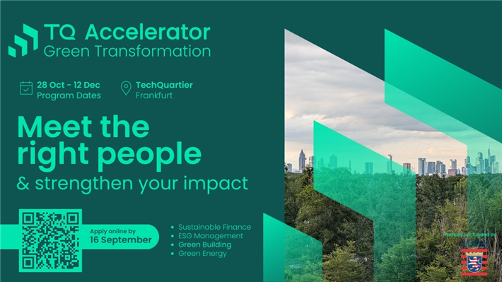 Wir freuen uns, den Start des TQ Accelerator: Green Transformation zu verkünden! Dieses kostenlose, mehrtägige Programm in Frankfurt richtet sich an Start-ups, die nachhaltige Lösungen in den Bereichen ESG-Management, Sustainable Finance, Green Building und Green Energy entwickeln.
