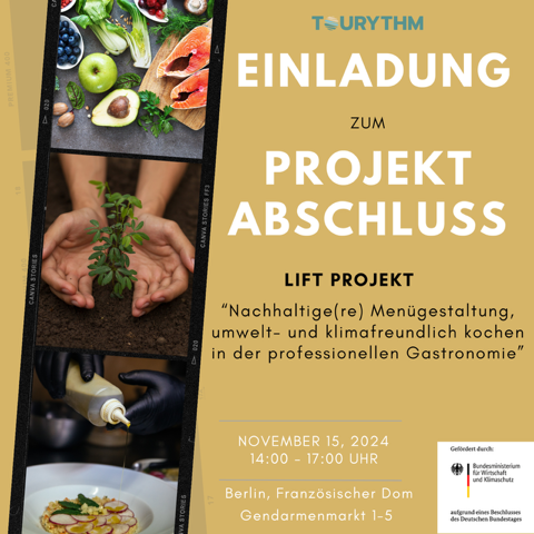 Die Tourythm GmbH lädt zum Projektabschluss des Liftprojektes "Nachhaltige(re) Menügestaltung, umwelt- und klimafreundlich kochen in der professionellen Gastronomie” ein.