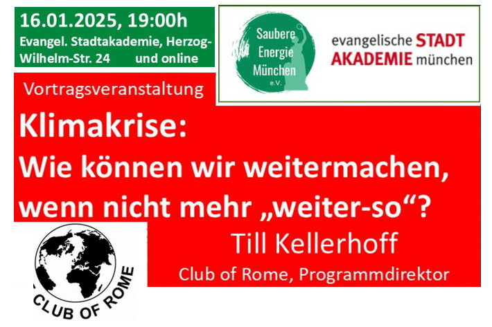 Veranstalter: Saubere Energie München e.V., Evangelische Stadtakademie und weitere Organisationen