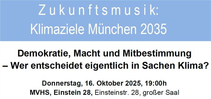 16.10.2025, 19:00 - 21:15 Uhr, 81675 München und onlineZUKUNFTSMUSIK Münchner Klimaziele 2035