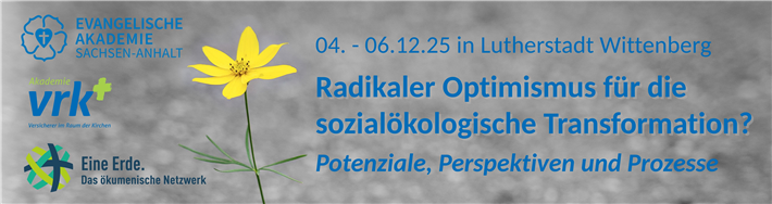 Ist es naiv, mit Blick auf die Klimaveränderung noch optimistisch in die Zukunft zu schauen? Oder verbirgt sich hier eine große Kraft, die wir dringend für die sozial-ökologische Transformation brauchen? Und falls ja, wie nutzen wir diese? Diesen Fragen ist eine Tagung vom 4. bis 6. Dezember 2025 in der Evangelischen Akademie Sachsen-Anhalt in Lutherstadt Wittenberg gewidmet. Der Titel der Tagung lautet: „Radikaler Optimismus für die sozialökologische Transformation? Potenziale, Perspektiven und Prozesse.” Veranstalter der Tagung sind das Ökumenische Netzwerk Eine Erde gemeinsam mit der Evangelischen Akademie Sachsen-Anhalt und der Akademie des Versicherers im Raum der Kirchen (VRK).