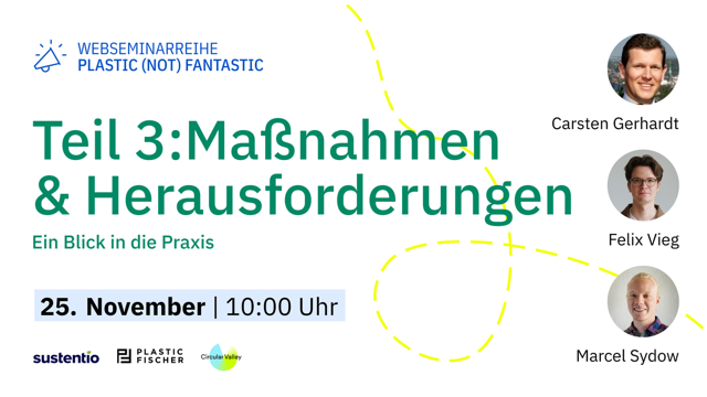 Plastic Fischer und sustentio laden am 25. November von 10:00–11:00 Uhr zum nächsten Teil ihrer Webseminarreihe „Plastic (not) fantastic" ein.