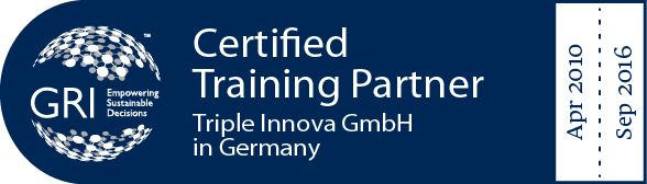 triple innova ist offizielle Trainingspartnerin der Global Reporting Initiative (GRI), der führenden internationalen Organisation für Nachhaltigkeits-Reporting. Der zweitägige Workshop vermittelt Ihnen Aufbau und Nutzen der GRI-Reporting-Leitlinien der Version G4. Durch Beispiele aus unserer Beratungspraxis, praktische Übungen zu den wichtigen Aufgaben im Reporting-Prozess und konkrete Tipps bereiten wir Sie auf den Reporting-Prozess in Ihrem Unternehmen vor. Dabei greifen wir auch aktuelle Entwicklungen (z.B. CSR Berichtspflicht und Integrated Reporting) auf.