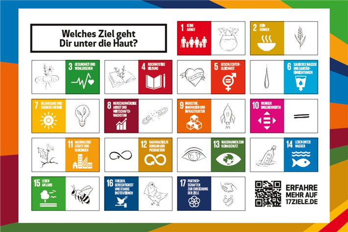 17 Tattoos für Verantwortung und Veränderung: Vom 30. Oktober bis 1. November 2025 setzt die Bildungskampagne #17Ziele von Engagement Global im Skyline Plaza Frankfurt ein sichtbares Zeichen für Nachhaltigkeit. 17 eigens entworfenen Klebetattoo-Motive bringen das Engagement für die Agenda 2030 direkt auf die Haut.