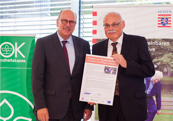 Politik und Wirtschaft ist einmalig in Deutschland. Der Charta sind bereits rund 130 Unternehmen beigetreten, die sich zu einer pflegesensiblen Personalpolitik bekennen. „Damit setzen die Arbeitgeber ein deutliches Signal dafür, dass Sie zur Enttabuisierung von Pflege und zur offenen Kommunikation über das Thema innerhalb des Betriebes beitragen möchten", betonte Minister Grüttner.Werner Deggim, Vorstandsvorsitzender der NORMA Group, sagte: „Mit der Unterzeichnung der Charta erkennen wir an, dass pflegende Angehörige eine besondere Verantwortung übernehmen. Als Arbeitgeber möchten wir unseren Beschäftigten Unterstützung in dieser besonderen Lebenssituation anbieten und reagieren damit auf sich verändernde Anforderungen im Zuge des demografischen Wandels. Nur so können wir die Fachkräfte gewinnen und langfristig an uns binden, die unser Unternehmen braucht."