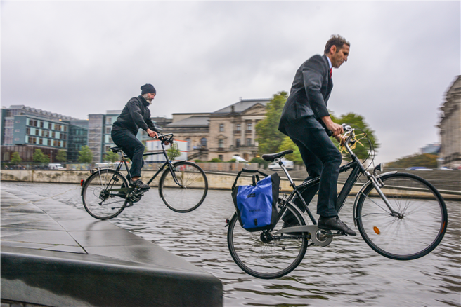 Die Initiativen Volksentscheid Fahrrad und "Volksentscheid Retten” protestierten heute im Business-Dress mit einem Bad in der Spree gegen die Sabotage bürgerlichen Engagements durch den Senat. Sie fuhren mit ihren Fahrrädern direkt in den herbstlichen Fluss, um dem Regierenden Bürgermeister Müller auf seinen Flug zur UN-Konferenz über nachhaltige Stadtentwicklung eine Botschaft mitzugeben: „Klimaschutz, Radverkehr und direkte Demokratie gehen baden! Doch ‚Global quasseln, lokal aussitzen‘ kann sich die Welt nicht mehr leisten." Der Senat hat heute eine weitere Frist von zwei Wochen zur Rechtsprüfung der Gesetzesvorlage der Volksentscheide Fahrrad und VE retten ohne Ergebnis verstreichen lassen. Damit verhindert er die Volksenscheide zur Bundestagswahl 2017. Der Radentscheid reduziert schnell und kostengünstig den CO2-Ausstoß, "Volksentscheid Retten” schafft Verbindlichkeit für alle Volksentscheide und sichert so das Radverkehrsgesetz.