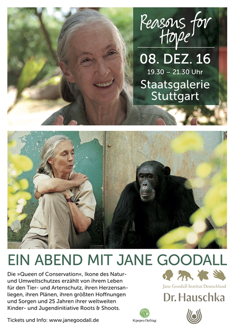 Am 08.12. um 19:30 wird Jane Goodall nach über 10 Jahren wieder in Stuttgart (in der Staatsgalerie) zu Gast sein.