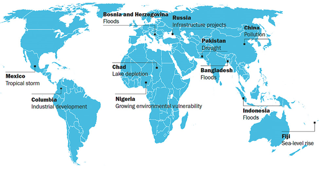 Für viele kam es überraschend, dass 2015 so viele Menschen über alle Grenzen hinweg aus dem Mittelmeerraum in die Mitte Europas kamen. Dabei sind die Ursachen und Folgen von Migration und Flucht schon länger Gegenstand wissenschaftlicher und politischer Debatten. Neben Armut, Hunger, Unterdrückung, Verfolgung und Krieg untergraben auch der Klimawandel und Umweltveränderungen wie Stürme, Überflutungen und Dürren die ökologischen und sozialen Lebensgrundlagen vieler Menschen. Wird in der Folge die Versorgung mit Wasser, Nahrung und Energie knapp, fliehen die Menschen in Gebiete mit besseren (Über-)Lebensbedingungen. Schon 1990 warnte der erste Bericht des Weltklimarats (IPCC) vor großen Migrationsbewegungen, und manche sahen im kommenden Klimawandel einen der wichtigsten Umweltfluchtgründe des 21. Jahrhunderts. Als 2007 der vierte IPCC-Bericht erschien, erreichte die Debatte eine neue Dimension. Dieser zufolge sei der Klimawandel ein „Bedrohungsmultiplikator" (threat multiplier) für Instabilität, Gewalt, Krieg und Flucht vor allem in regionalen Brennpunkten, wo Armut, Gewalt, Ungerechtigkeit und soziale Unsicherheit herrschen. Der klimabedingte Stress könne bestehende Probleme verschärfen und den Abwanderungsdruck erhöhen. Besonders betroffen seien kleine Inselstaaten, bevölkerungsreiche Küstenzonen und Gebiete, die bereits mit Wasser- und Nahrungsproblemen kämpfen. Auch ein Positionspapier der EU-Kommission warnte 2008 vor einem „wesentlich erhöhten Migrationsdruck" für Europa als Folge des Klimawandels.