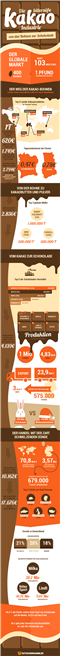 5,5 Millionen Farmer ernten rund 3,9 Millionen Tonnen Kakaobohnen jährlich. Um ein Pfund bzw. mehr als zwei Tafeln Schokolade herzustellen, werden 400 Kakaobohnen benötigt. In Afrika, darunter die Elfenbeinküste, Ghana und Kamerun, wird der größte Teil der Kakaobohnen weltweit geerntet, insgesamt rund 2,77 Millionen Tonnen. Aber auch Indonesien (325.000 Tonnen) und Ecuador (250.000 Tonnen) sind wichtige Herkunftsländer der bitteren Bohne. Das wirklich Bittere an diesem Prozess ist das Tageseinkommen eines Bauern: An der Elfenbeinküste verdient ein Farmer 47 Cent am Tag, in Ghana sind es 78 Cent. Damit bewegen sich die Einkommen stark unter der Armutsgrenze.Kosten von einer Tonne Kakaobohnen für den Bauern: ca. 620 Euro