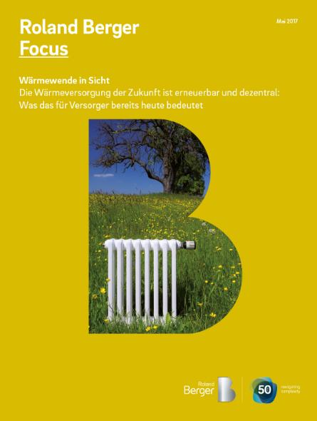 Nachdem die erneuerbaren Energien in den vergangenen Jahren den Strommarkt revolutioniert haben, ist als nächstes der Wärmesektor dran: Heute kommt die Energie für Heizen und Kühlen in Deutschland noch fast vollständig aus konventionellen Quellen (2015: 87%) – zu viel, um die in Paris eingegangene Verpflichtung zu erfüllen, die Treibhausgasemissionen bis 2050 um 80 bis 95 Prozent im Vergleich zu 1990 zu reduzieren. Deshalb hat die Bundesregierung in ihrem nationalen Klimaschutzplan 2050 erstmals für die Sektoren Strom, Wärme, Industrie und Verkehr jeweils individuelle Zwischenziele für 2030 eingeführt. Außerdem sollen die Sektoren enger miteinander verzahnt werden, um die Effizienz zu steigern. Auf Wärmeversorger und –Kunden kommen dadurch erhebliche Veränderungen zu, die sie in ihren Investitionsentscheidungen frühzeitig berücksichtigen müssen. Um den Unternehmen dafür die nötigen Planungsgrundlagen an die Hand zu geben, haben die Energieexperten von Roland Berger in ihrer neuen Studie "Wärmewende in Sicht" den aktuellen und zukünftigen Wärmemarkt sowie die Auswirkungen des Klimaschutzplans 2050 auf die Versorger analysiert.