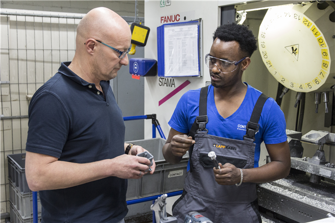 Rund eine Million Menschen haben seit 2015 in Deutschland Zuflucht gesucht. Viele von ihnen wollen sich und ihre Familien nicht nur vor politischer Verfolgung in Sicherheit bringen, sondern hier ein neues Leben beginnen – auch im Beruf. Damit das gelingt, benötigen die Berufsanfänger nicht nur sprachliche und fachliche Kenntnisse. Sie brauchen auch Menschen wie Ausbildungsleiter Thilo Lindner von der Stuttgarter Lapp Group. Er zeigt ihnen ab dem ersten Tag im Betrieb, welche Risiken am Arbeitsplatz drohen und wie sie sich davor schützen können.Es gibt dabei viele Wege zum Ziel, wie der Technische Aufsichtsbeamte Florian Kraugmann von der BG ETEM betont. Entscheidend sei, wie die Inhalte zu Arbeitssicherheit und Gesundheitsschutz vermittelt werden. Dafür stellt die BG ETEM zum Beispiel zahlreiche Unterrichtsmedien bereit, die bevorzugt mit Bildern und Piktogrammen arbeiten – von Trickfilmen bis hin zu InterAktiv-Lernmodulen.