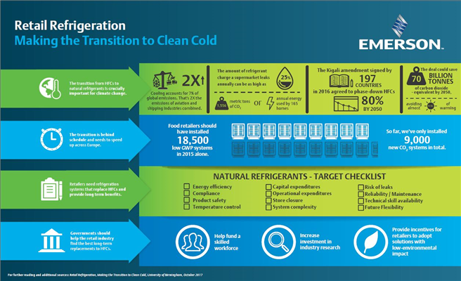 Das vollständige und kostenlos verfügbare Whitepaper Retail Refrigeration: Making the Transition to Clean Cold („Bericht zum europäischen Einzelhandel: Übergang zu sauberer Kältetechnik") finden Sie unter www.emersonclimate.com/europe/en-eu/About_Us/News/Pages/Studies.aspx.