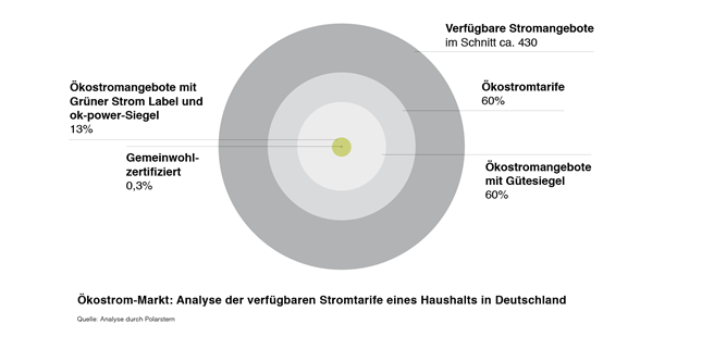 Der Strommarkt ist seit einigen Jahrzehnten bereits liberalisiert und die Anzahl der Ökostromangebote steigt. Nach einer Analyse des Ökoenergieversorgers Polarstern ist die Zahl der Ökostromtarife mit Gütesiegel verglichen zum Vorjahr allerdings um rund 10 Prozent gesunken.