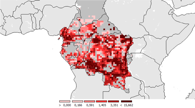 Dass die Entwaldung des Kongobeckens in den kommenden Jahrzehnten zu einem Niveau anwachsen wird, wie es bereits heute in den Regenwäldern Brasiliens beobachtet wird, ist eines der zentralen Ergebnisse des Projekts. Laut den Berechnungen der Expertinnen und Experten wird der Anstieg der Entwaldung bei mindestens 55 und bis zu 140 Prozent von 2020 bis 2030 im Vergleich zum Zeitraum 2000 bis 2010 liegen. Davon betroffen sind insbesondere das Zentrum Kameruns und der Osten der Demokratischen Republik Kongo. Mit dem ansteigenden Bevölkerungs- und Wirtschaftswachstum steigt auch die landwirtschaftliche Nutzung der Waldflächen an. Einerseits werden heimische Nahrungsmittel benötigt. Angebaut werden vor allem Maniok und Mais als Grundnahrungsmittel sowie Erdnüsse. Andererseits wird etwa auch Palmöl im Kongobecken produziert. Die Anbaugebiete dieses beliebten wie umstrittenen Exportprodukts sollen sich bis 2030 verdoppeln. Auf die Entwicklung der Treibhausgas-Emissionen umgelegt, bedeutet das einen Ausstoß von 66 bis 105 Gigatonnen (Gt) Kohlendioxid zwischen 2010 und 2030. Zu den weiteren Bedrohungen für die Wälder des Kongo-Beckens zählen illegale Holzwirtschaft und Jagd sowie der Bergbau.