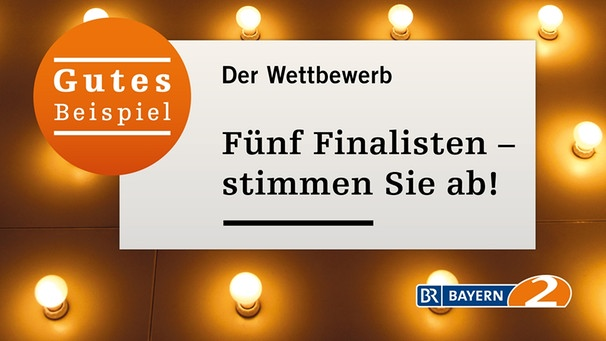 444 Projekte haben sich in diesem Jahr bei „Gutes Beispiel", dem Bayern 2-Wettbewerb für eine bessere Gesellschaft beworben. Jetzt kann das Publikum unter bayern2.de/gutes-beispiel aus fünf Finalisten den Gewinner bestimmen. Mit der Aktion fördert das Kultur- und Informationsradio des Bayerischen Rundfunks innovative Projekte, die die Welt ein bisschen besser machen. Der Wettbewerb wurde in diesem Jahr zum dritten Mal ausgeschrieben.