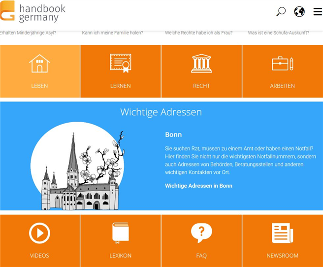"Wir sind die digitale Verwandtschaft der Geflüchteten" Digitales Handbuch für Geflüchtete und Neuzuwanderer jetzt in sieben Sprachen | Telekom und Adobe Systems unterstützen Integrationsprojekt der Neuen deutschen Medienmacher handbookgermany.de ist die Weiterentwicklung des Portals www.refugees.telekom.de, mit dem die Telekom 2015 als Hilfestellung für Flüchtlinge neben kostenlosem W-LAN in Erstaufnahmeeinrichtungen auch erste Informationen für die Phase der Ankunft bereitstellte. Weiterlesen... |