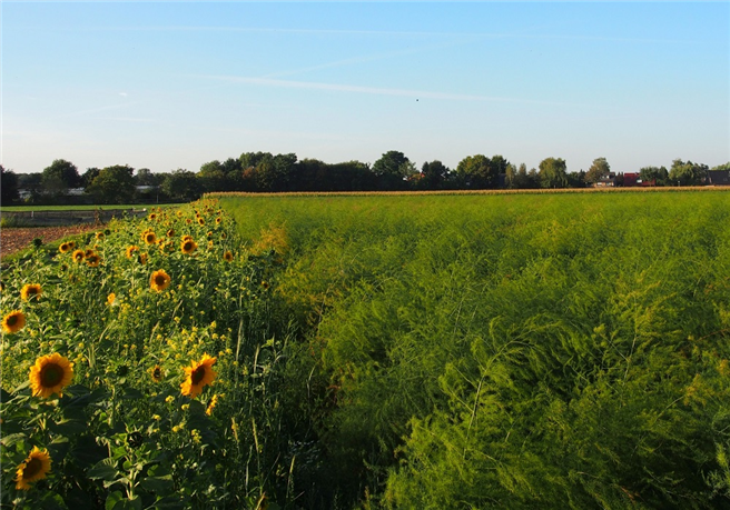 Am 24. Juni - dem Johannistag - endet in Deutschland traditionell die Spargelernte. Er ist ein wichtiger Tag im Leben vieler Lebewesen: Spargelfans sind traurig, weil sie wieder ein Jahr auf ihr Lieblingsgemüse - frischer Spargel aus deutschem Anbau - warten müssen. Vielleicht ist es ein kleiner Trost für sie, dass sich mit dem Ende der Spargelernte nun andere Lebewesen am Spargel erfreuen können. Denn was die "Ruhephase" für die Spargelpflanze bedeutet, wird zum quirligen Lebensraum für viele Insekten, Spinnen und Wildtiere. Die wachsenden und sich stark verzweigenden Spargelpflanzen bieten ihnen bei einer maximalen Höhe von etwa 1,50 bis 1,80 Meter einen attraktiven Lebensraum, und das bis weit in den Herbst hinein. Dass die deutschen Spargelproduzenten dieses "Paradies" noch um die sogenannten Blühstreifen erweitern, kommt allen zugute: der Artenvielfalt, den Spargelpflanzen und letztlich auch dem Menschen. Heimische Blütenpflanzen bevorzugt