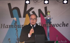 ![]() Seine Durchlaucht Fürst Albert II von Monaco betonte auf der Hamburger Klimawoche die besondere Bedeutung des gesellschaftlichen Engagements im Kampf gegen den globalen Klimawandel. © Hamburger Klimawoche/Rainer Jensen |