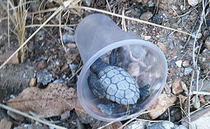 ![]() Ein achtlos weggeworfener Plastikbecher wird für die kleine Schildkröte zur tödlichen Falle. Das Baseler Übereinkommen ist ein Schritt in die richtige Richtung. © Aysen Belpinar |