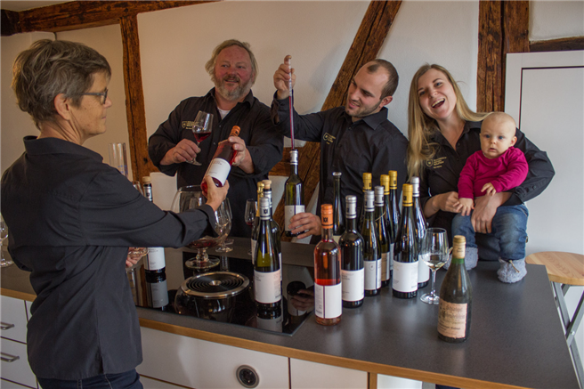 Als großen Vorteil sieht er die familiäre Konstellation auf Hohenbeilstein, denn auf einem Familienweingut ist man niemals alleine. Seine Frau Silke, zwar fachfremd, aber weinbegeistert, hat sich ihren Platz im Marketing und in der Buchhaltung bereits ergattert. Vater Hartmann und Mutter Antje unterstützen die beiden auch weiterhin bei ihrer Arbeit im Weingut. Beste Voraussetzungen also für einen reibungslosen Übergang von Alt zu Jung.