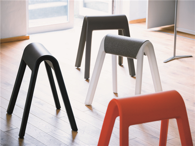 Den Perspektivwechsel jenseits von Rollen und Hierarchien erleichtern ungewöhnliche Möbelobjekte wie der Sitzbock: Der heitere Hingucker kann quer besessen, in Längsrichtung „geritten" oder als Stütze beim Stehen genutzt werden. Aus durchgefärbtem Polypropylen in vier Farben hergestellt und nur 4,8 Kilogramm schwer,