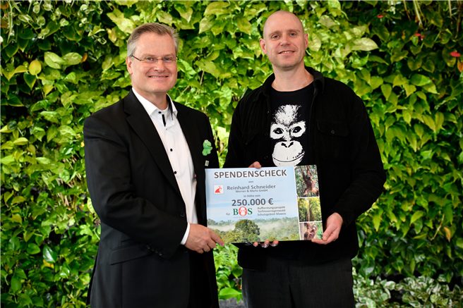 Werner & Mertz-Inhaber Reinhard Schneider, diesjähriger Träger des Deutschen Umweltpreises der Deutschen Bundesstiftung Umwelt (DBU), spendet 250.000 Euro an den Verein BOS Deutschland (Borneo Orangutan Survival), der damit im indonesischen Schutzgebiet Mawas wiederaufforsten wird. „Es ist mir wichtig, dass mein Preisgeld zu Gunsten einer echten Biodiversitätsmaßnahme genutzt wird. Die Effekte für den Klimaschutz sind mit der Pflanzung von einheimischen Bäumen im Regenwald, die massiv viel CO2 kompensieren, am höchsten", erklärt Reinhard Schneider.