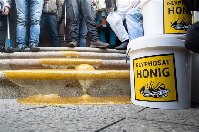 Wenige Tage vor der „Wir haben es satt!"-Großdemonstration hat ein Brandenburger Imkerpaar heute Vormittag über einhundert Eimer mit Honig vor dem Bundeslandwirtschaftsministerium in Berlin abgeladen. Die insgesamt rund vier Tonnen Honig von Sebastian und Camille Seusing sind ein Fall für den Müll. Wegen zu hoher Belastung mit Glyphosat – es wurde eine bis zu 152-fache Überschreitung des erlaubten Grenzwerts gemessen – darf der Honig nicht verkauft werden. Der Gegenwert des Schadens beträgt rund 60.000 Euro. Die eigentlich erfolgreiche Imkerei steht dadurch jetzt vor dem Aus.