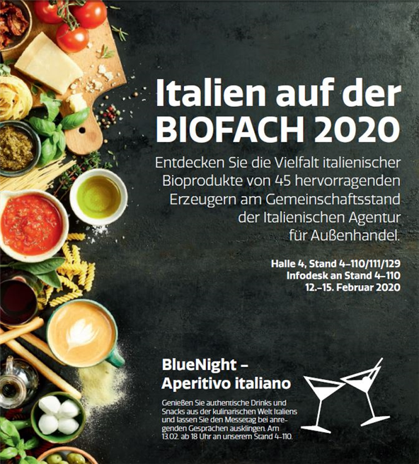 Italien auf der Biofach 2020 Traditionelle Bio-Spezialitäten bieten neues Umsatzpotenzial Italien ist einer der größten Bio-Exporteure der Welt und Deutschland der wichtigste Handelspartner. Wie umfangreich die Produktpalette ist, zeigt die Italienische Agentur für Außenhandel (ICE) auf der Biofach in Nürnberg. 45 italienische Unternehmen präsentieren auf dem Gemeinschaftsstand der ICE ihre Bio-Spezialitäten. Weiterlesen... |