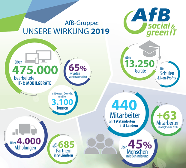 IT-Aufarbeitung durch AfB gGmbH trägt nachweislich zu Klimaschutz bei Gemeinnütziger Refurbisher mit klaren Zukunftsvisionen Refurbishment schont Klima und Umwelt. Im vergangenen Jahr hat AfB mehr als 475.000 IT- und Mobilgeräte bearbeitet und konnte zwei Drittel davon durch zertifizierte Datenvernichtung und professionelle Aufarbeitung wiedervermarkten und so signifikant zur Elektroschrottvermeidung beitragen. Weiterlesen... |