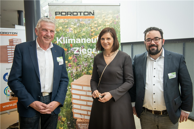 Die Vorzüge des Ziegels sowie die Klimaneutralität moderner Poroton-Produkte stellte Clemens Kuhlemann, Geschäftsführer der Deutschen Poroton, dem Fachpublikum vor. Der Baustoff diene als Energiespeicher und sei vor allem frei von schädlichen Emissionen. Von der Politik forderte Kuhlemann eine generelle Material- und Technologieoffenheit bei Bauprojekten.