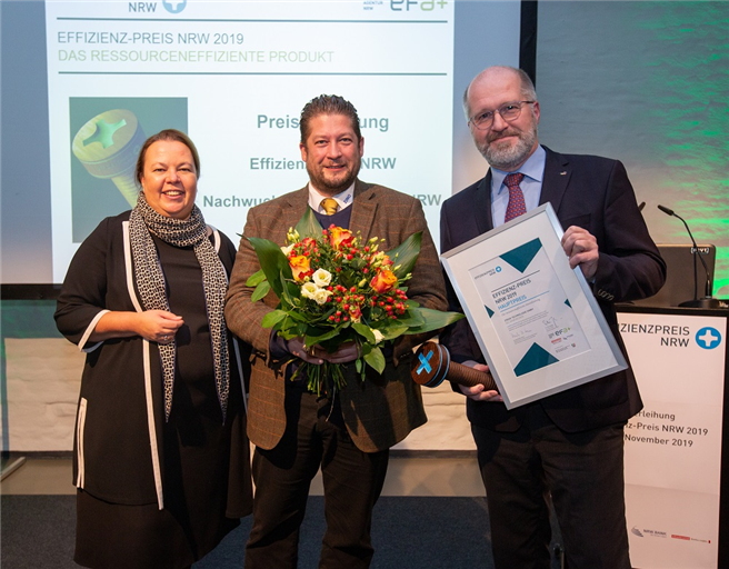 Die vom Gelsenkirchener Unternehmen ZINQ® Technologie GmbH entwickelte materialsparende Oberfläche microZINQ gehört zu den vier Gewinnern des Effizienz-Preises NRW 2019. Tatsächlich werden die behandelten Materialien durch die fortschrittliche Art der Mikroverzinkung nachhaltig und langfristig vor Korrosion geschützt, der Material- und Energieeinsatz wird gegenüber konventionell stückverzinkten Oberflächen deutlich reduziert. microZINQ ist eine nach den Cradle to Cradle Standards zertifizierte Oberfläche und schützt weltweit schon über 20 Millionen Fahrzeug-Bauteile. Das Unternehmen hat bereits eine microZINQ-Lizenz an einen deutschen Automobilhersteller vergeben, weitere Lizenzvergaben stehen an.Herausragendes Engagement zum Umweltschutz im Büro