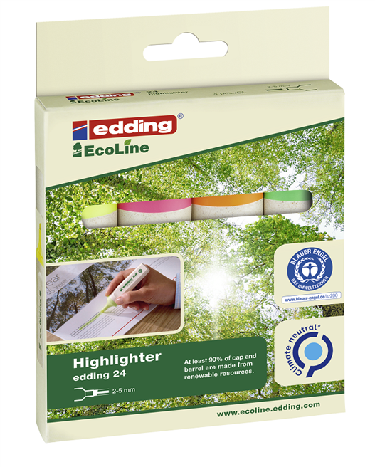 Das Thema Nachhaltigkeit hat bei edding seit Anbeginn einen sehr hohen Stellenwert. Bereits die ersten Marker vor 60 Jahren waren nachfüllbar. Für 2020 hat edding ein Nachhaltigkeitskonzept mit tiefgreifenden Maßnahmen in den Bereichen Nachfüllen, Recycling, Ressourcenschonung und Klimaneutralität entwickelt und ist nominiert für den CSR-Preis der Bundesregierung. So bestehen die Marker der edding EcoLine größtenteils aus Post-Consumer-Kunststoff bzw. nachwachsenden Rohstoffen. Der Textmarker der Serie hat 2018 den Blauen Engel erhalten und Anfang dieses Jahres wurde der Ecoline die Klimaneutralität bescheinigt. Insgesamt sind 70 % aller edding-Produkte nachfüllbar und ausgediente Marker können in einer Rücknahmebox entsorgt werden.