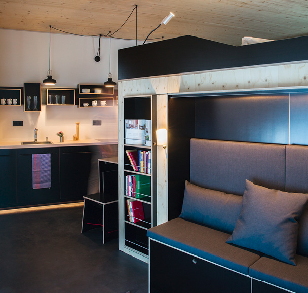 Designstudie Kammerspiel: Raum im Raum-Konzepte ermöglichen das Wohnen auf kleinstem Raum. Designstudie Kammerspiel: Raum im Raum-Konzepte ermöglichen das Wohnen auf kleinstem Raum. Designstudie Kammerspiel: Raum im Raum-Konzepte ermöglichen das Wohnen auf kleinstem Raum. © Julia RotterHier kann man auch mit Bauelementen „spielen". Ich würde zum Beispiel die ganze Installation ästhetisch sichtbar verlegen. Ich finde das wunderschön. Richtig gemacht, ist das eher eine Zierde. Du brauchst nichts schlitzen, nichts kaputt machen, es ist leichter, etwas zu verändern und problemlos zu reparieren. Wir brauchen viel mehr Ehrlichkeit in Form und Funktion! Dafür kommt jetzt der Mut so langsam.