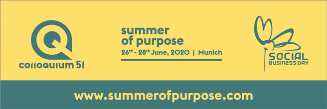 Die Corona-Pandemie hat uns vor Augen geführt, dass wir nicht mehr weitermachen können wie bisher: Es gibt keinen Schritt zurück. Vielmehr benötigen wir einen kreativen Denkprozess für den Weg aus der Krise. Nach einem Frühjahr der Abschottung treffen sich führende Denker und Entscheider im „Summer of Purpose" vom 26. bis 28. Juni 2020 in München. Ziel ist es, eine neue Art des Wirtschaftens und Wege aus der globalen Krise zu finden. Der „Summer of Purpose" besteht aus dem „Social Business Day", der seinen 10. Jahrestag feiert, und dem neuen Dialogformat „Colloquium 51".