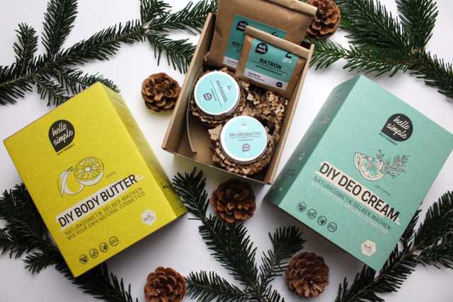 Noch keine Weihnachtsgeschenk Idee? Mit den hello simple DIY Boxen kannst du deine Naturkosmetik oder Putz- und Waschmittel zu Hause selbst zusammen mixen.