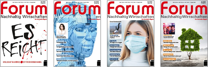 - 2021 - Inspirationen tanken: Um den Wandel zu beflügeln, stellen wir ein Kontingent von 1.000 Jahresabos 2021 zum Preis von 15 € inkl. Versand statt 30 € zur Verfügung. Nutzen Sie es als Geschenk für Freunde, Kunden, Geschäftspartner etc., um Ihr Engagement in Sachen Nachhaltigkeit und Zukunftsgestaltung zu demonstrieren.
