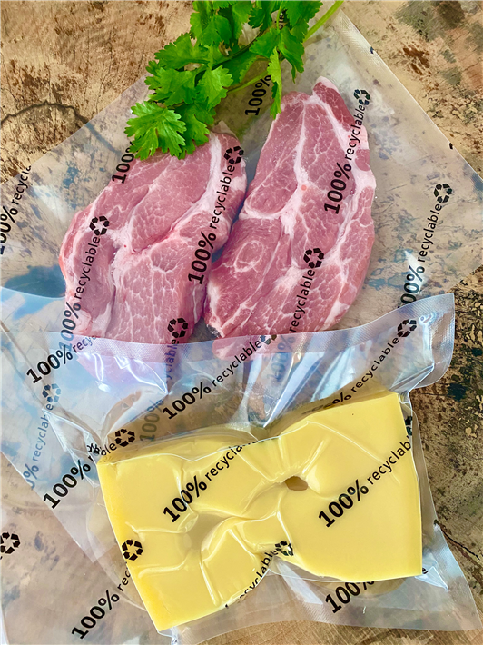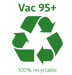 Der nachhaltige Produktschutz ist dabei gewohnt leistungsstark. Er hat die gleichen Barriereeigenschaften wie die klassischen PA/PE-Vakuumbeutel und hält auf höchstem Niveau Lebensmittel frisch und appetitlich. Die hohen Barriereeigenschaften schützen die verpackten Produkte gegen Wasserdampf (H2O) und Sauerstoff (O2) und sorgen so für eine lange Haltbarkeit von Lebensmitteln und anderen empfindlichen Produkten. Durch die sehr gute Siegelfähigkeit kann der VAC 95+ auf allen gängigen Vakuumkammermaschinen verwendet werden. Er ist damit der ideale umweltverträgliche Beutel für sensible Lebensmittel wie Fleisch, Wurst, Fisch oder Meeresfrüchte. Aber auch Käse, Kartoffeln, Fertiggerichte sowie Gemüse bleiben im VAC 95+ länger frisch und werden während des Transports und in den Verkaufsregalen sicher vor Verderb geschützt. Für die hygienische Konservierung von Lebensmitteln sorgen das enge Anliegen der Vakuumbeutel am Produkt sowie eine stabile Gas- und Sauerstoffbarriere.