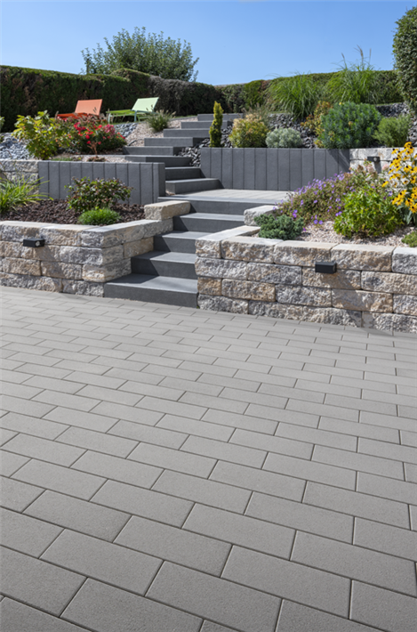 Vios RX40 wird in den Farben grau und anthrazit im Format 40 x 20 x 8 Zentimeter angeboten. Das schmale Fugenbild und die fein gestrahlte Oberfläche aus Natursteinkörnung sorgen für ein ruhiges und anmutiges Flächenbild, das sich dezent in die vorhandene Haus- und Gartenarchitektur einfügt. Die Pflastersteine sind mit allen Mitgliedern der Vios-Familie kombinierbar. So erhält man zahlreiche Gestaltungsmöglichkeiten mit Terrassenplatten, Stufen, Palisaden, Poller oder den Multiblock-Sitzen. Weitere Infos zum System gibt es auch unter www.kann.de.