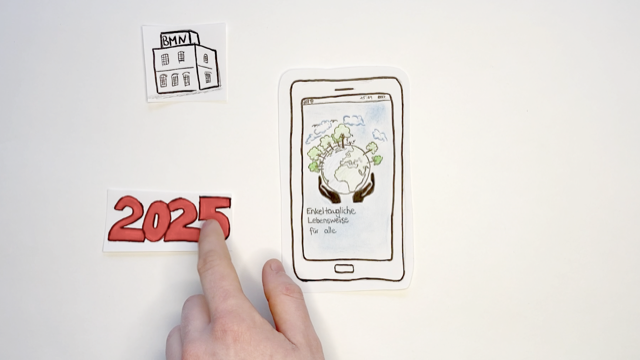 Ein Gedankenspiel: Seitdem Petra eine App vom Bundesministerium für Nachhaltigkeit nutzt, hat sich ihr Leben völlig verändert. "Enkeltaugliche Lebensweise für alle", so der Name, hilft Petra, nachhaltiger zu leben. Durch sie nimmt Petra beispielsweise an Challenges teil, verabredet sich mit anderen zum gemeinsamen Essen und sucht in einer Karte den nächsten Unverpackt-Laden. Petra lebt mit einer Behinderung, doch das ist für sie alles kein Problem: Die App gibt es auch in leichter Sprache, einfach zu bedienen ist sie ohnehin. Auch Bernd, Petras Betreuer, nutzt sie. Ab 2025 soll die App für alle Smartphone-Nutzer*innen verpflichtend sein.