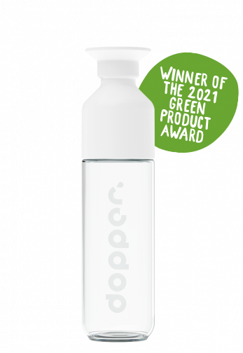 Gewinner in der Kategorie ‘New living and Sustainable Lifestyle Design for Consumer Goods 2021’. Die wiederverwendbare Glasflasche von Dopper hat die visionären Expertenjury vom renommierten Green Product Award-Wettbewerb einstimmig überzeugt. Während der Online-Zeremonie wurde das niederländische Unternehmen Dopper für ihre Design Glasflasche ausgezeichnet. Die Dopper Glas ist die erste Cradle to Cradle zertifizierte Glas Flasche.