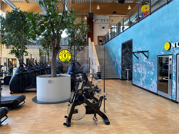Ein Studiokonzept, das Fitness und Umweltbewusstsein verbindet: Mit dem Gold’s Gym Campus Europe in Berlin Spandau hat Schwitzke Project eine weltweit einzigartige Synergie geschaffen. Als verantwortlicher Generalunternehmer hat der Experte für komplexe Bestandsprojekte den Innenausbau der Studio-Fläche innerhalb der 5.200 m² großen Sportstätte betreut. Das Ergebnis bildet ein Studiokonzept, das neue Nachhaltigkeitsstandards setzt.Mitten im Lockdown hat das Team von Schwitzke Project an der Paulsternstraße mit dem Gold’s Gym ein Fitnessstudio realisiert, das in Sachen Nachhaltigkeit gleich mehrfach punkten kann: Im Ausdauerbereich filtern zehn Meter hohe Bäume Schadstoffe aus der Luft, die Trainingsböden bestehen aus recycelten Autoreifen oder Kork, Wandfliesen aus alten Computermonitoren. Auch energietechnisch stehen alle Zeichen auf Umweltschutz: Das Blockheizkraftwerk läuft mit Biogas, die Sonnenenergie wird durch eine Solarblume nutzbar gemacht. Gemeinsam mit der TU Berlin entwickelte die RSG Group außerdem 150 „Boost Bikes", auf denen die Sportler selbst Strom erzeugen können. Neben ihrer klaren Nachhaltigkeitsorientierung bietet das Traditionsstudio dabei gewohnt hohe Ausstattungsstandards, eine professionelle Betreuung sowie Outdoor- und Performancebereiche.