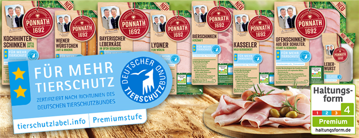 PONNATH ist aktuell der einzige nationale Markenanbieter, der ein Sortiment mit der höchsten Stufe (Premiumstufe) des Tierschutzlabels und Haltungsstufe 4 des deutschen Tierschutzbundes anbietet. Erste Prämierungen für die schnell wachsende Produktlinie stellen sich schon ein. Wir sind mit unserem Partnerhof des Traditionsprogramms unter den Finalisten des Ceres Award in der Kategorie „Landwirt des Jahres", weitere anerkennende Auszeichnungen sind zu erwarten.